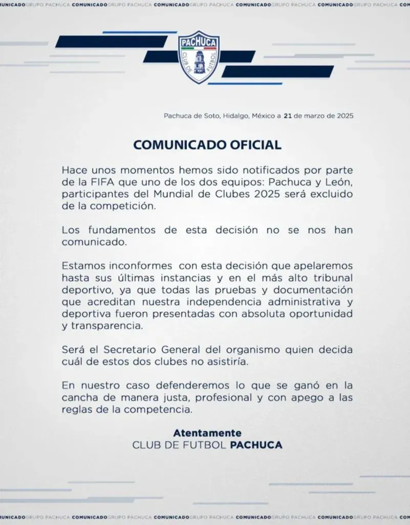 La Liga Deportiva Alajuelense está a un paso de hacer historia. Este viernes, el Grupo Pachuca —que administra a los clubes mexicanos Pachuca y León— recibió una notificación oficial por parte de la FIFA: uno de sus equipos quedará fuera del Mundial de Clubes 2025.