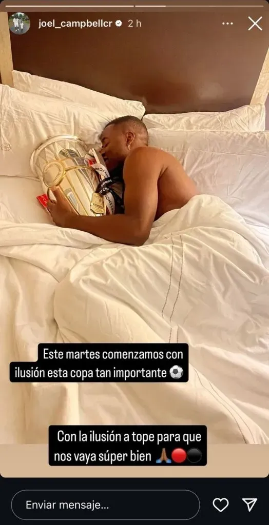 Horas atrás, Joel Campbell publicó una foto en la que se lo ve durmiendo junto a la Copa de Campeones Concacaf que ganó con el León en 2023. Justamente esta conquista es la que terminó clasificando al equipo esmeralda al Mundial de Clubes 2025, plaza que quieren obtener los Manudos.