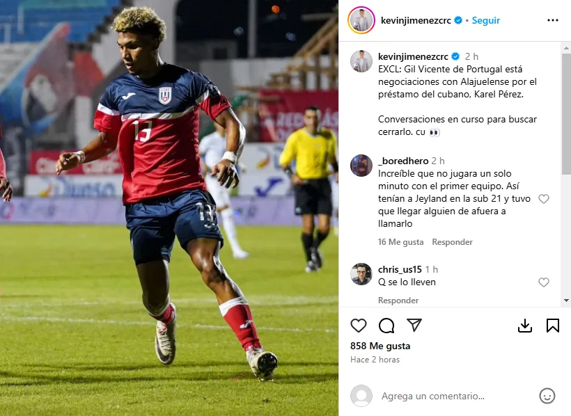Según información de Kevin Jiménez, “el Gil Vicente de la primera división de Portugal está en negociaciones con Alajuelense por el préstamo del cubano Karel Pérez”.
