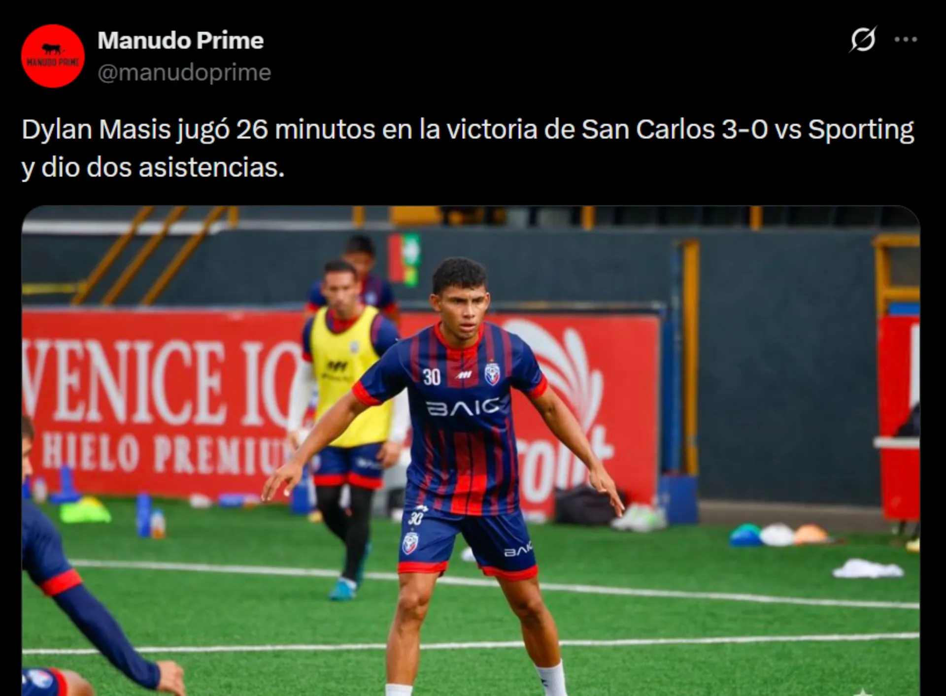 La apuesta no tardó en dar resultados. En su primer partido con los Toros del Norte, Dylan Masís ingresó de cambio y en apenas 26 minutos fue determinante, aportando dos asistencias en la contundente victoria de 3-0 ante Sporting.