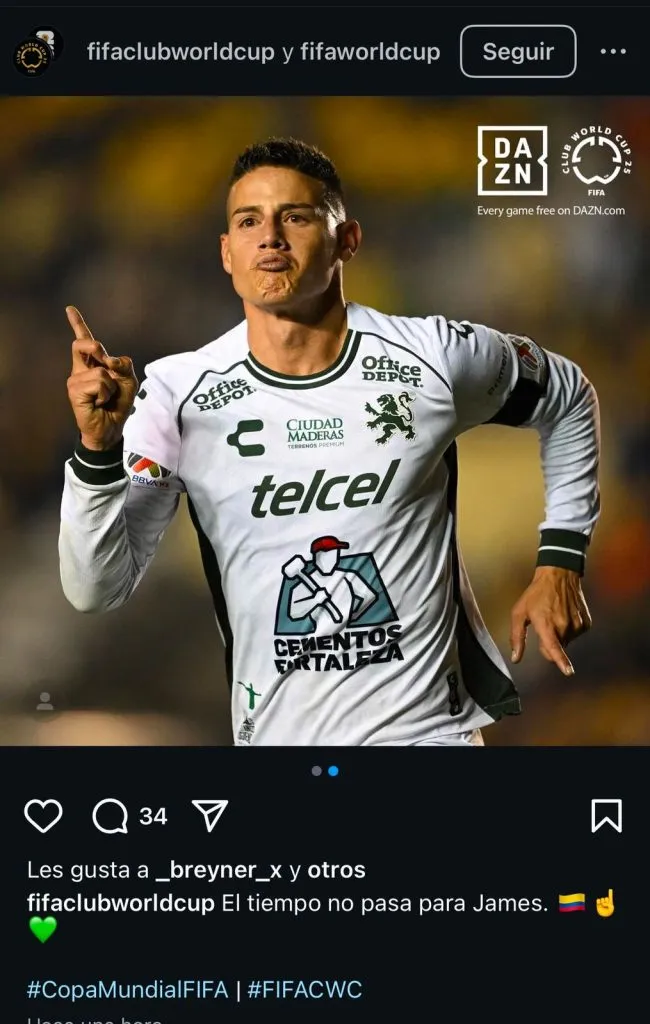 A través de sus redes sociales, la FIFA resaltó lo que viene haciendo James Rodríguez en el León de la Liga MX tras su llegada. Con un mensaje “JR10 TM”, como marca registrada, se han ilusionado con este arribo del colombiano al fútbol mexicano.