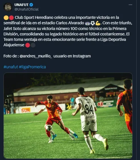 “Con este triunfo, Jafet Soto alcanza su victoria número 100 como técnico en la Primera División, consolidando su legado histórico en el fútbol costarricense. El Team toma ventaja en esta emocionante serie frente a Liga Deportiva Alajuelense”, afirmó la Unafut.