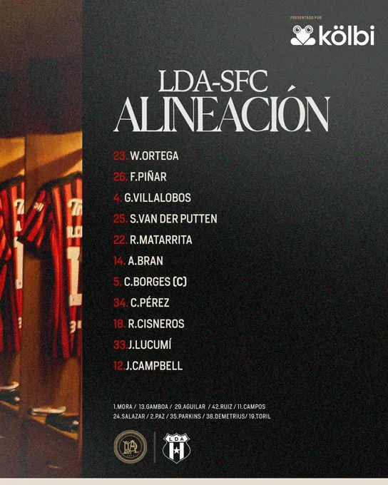 Sin embargo, minutos después, Alajuelense eliminó la publicación y publicó una nueva alineación titular, ya sin la presencia de Tristan Demetrius, quien había sido suspendido tras ver la tarjeta roja contra Cartaginés el pasado jueves.