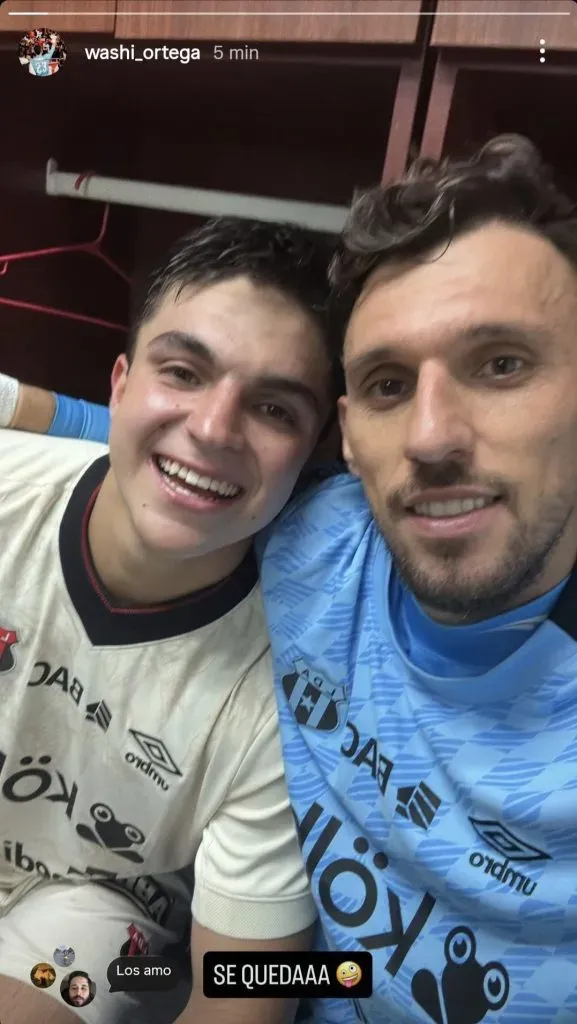 Lo llamativo de Ortega es que, una vez terminado el partido, publicó una imagen en sus historias de Instagram. En la misma, posó junto a Santiago van der Putten y confirmó finalmente que el defensor “se queda” en la Liga.
