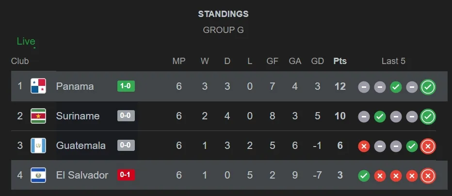 Con el triunfo parcial de Panamá ante El Salvador, Costa Rica no tiene chances ni de ir al repechaje, aunque le gane a Honduras. Los catrachos también quedan afuera del repechaje por diferencia de gol con Surinam.
