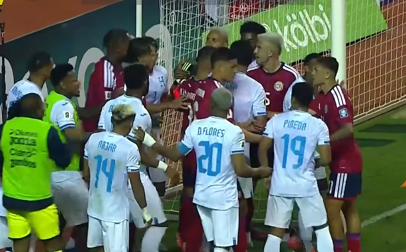 Tras una jugada polémica, jugadores de Costa Rica y Honduras. El árbitro terminó expulsando a Manfred Ugalde y Luis Palma, quien ya estaba afuera. Moncada también fue amonestado.