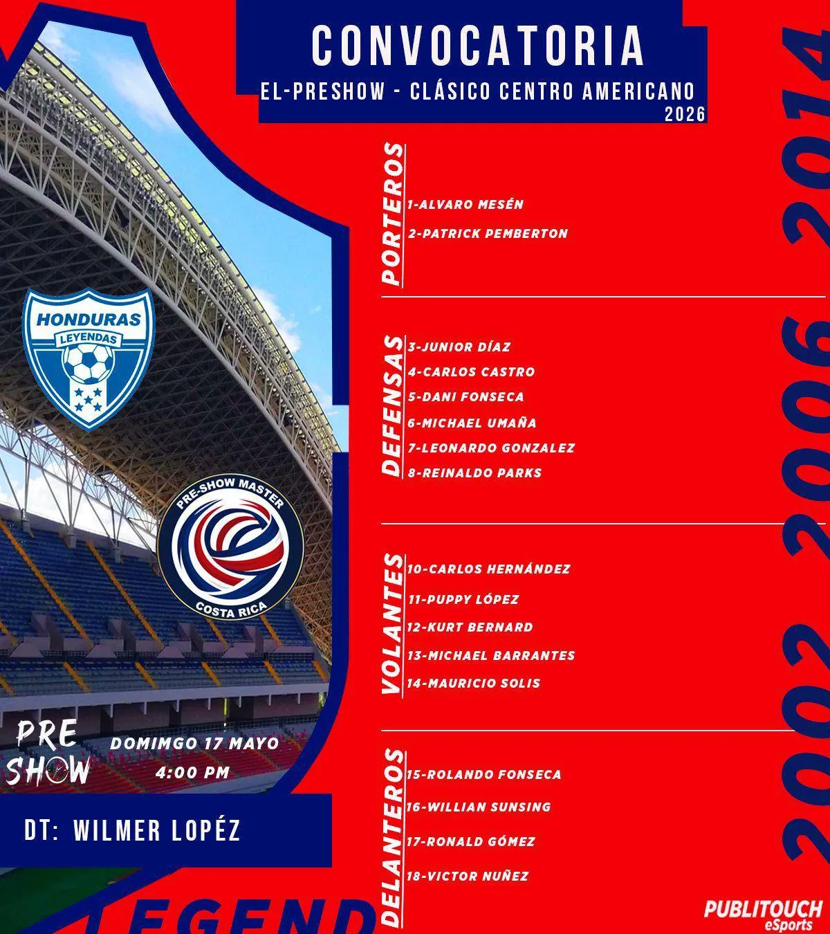 - Volantes: Carlos Hernández, “Puppy” López, Kurt Bernard, Michael Barrantes, Mauricio Solís.
