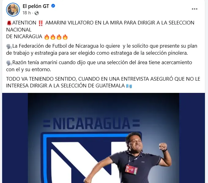 Este éxito del entrenador guatemalteco llevó a que de diferentes partes de Centroamérica se fijen en él. Y es que, según la información de “El Pelón GT” en sus redes sociales, Villatoro está en la mira de la Selección de Nicaragua.