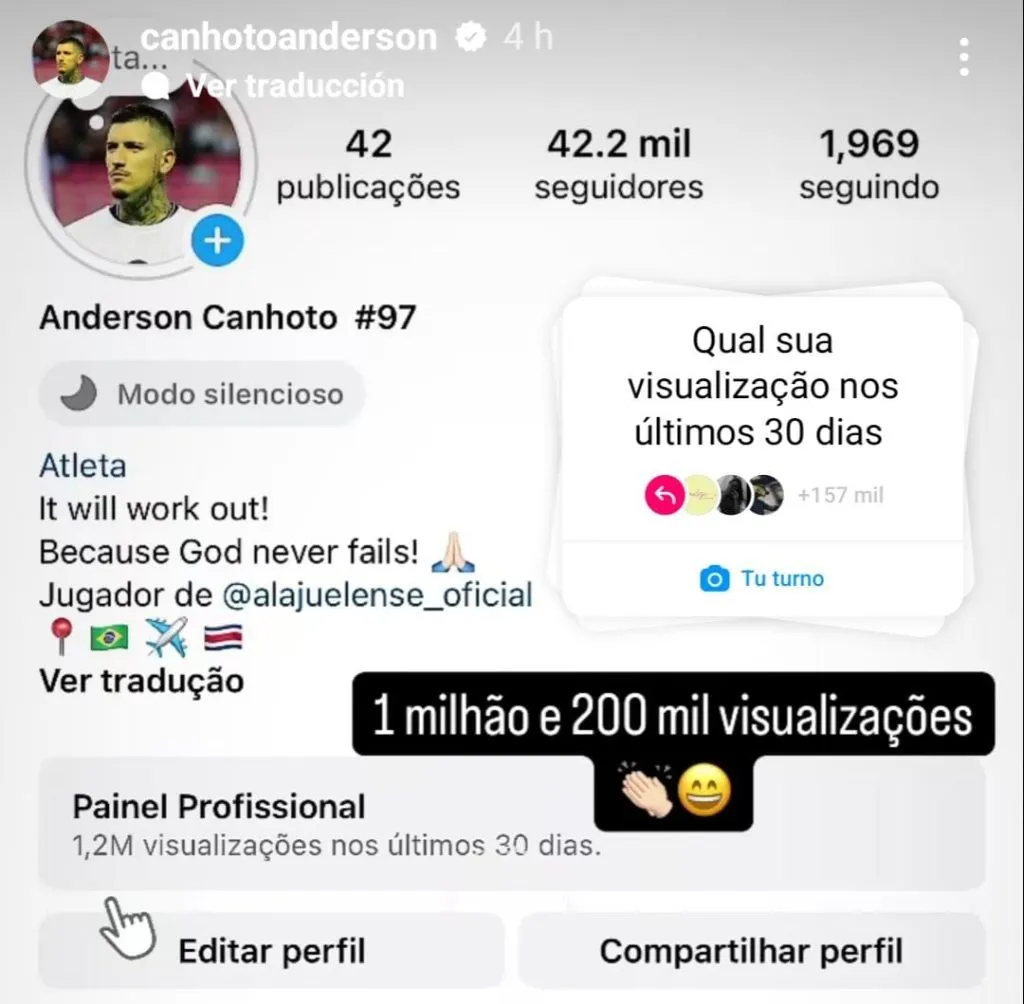 Es por esto, justamente, que genera mucho atractivo y que la gente no se pierde nada de lo que sube, al punto de que en el último mes su perfil @canhotoanderson alcanzó el 1.2 millones de visualizaciones. Y él lo celebró.