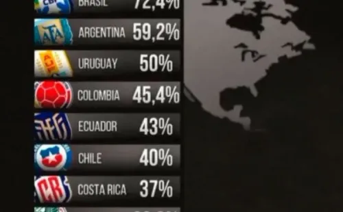 - Ecuador: 43% (3 Mundiales)