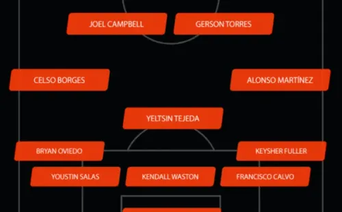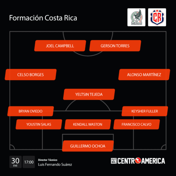 Costa Rica: Keylor Navas (C); Keysher Fuller, Francisco Calvo, Kendall Waston, Youstin Salinas y Bryan Oviedo; Yeltsin Tejeda, Alonso Martínez y Celso Borges; Joel Campbell y Gerson Torres.