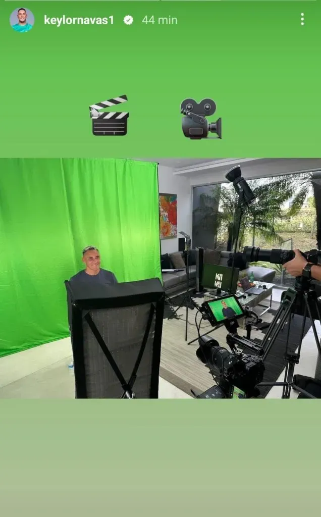 En una historia de Instagram, el tres veces mundialista con Costa Rica publicó una imagen donde se lo ve de pie frente a un croma verde, acompañado de emojis relacionados con el cine.