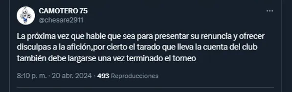 A través de las distintas plataformas del Puebla, los aficionados de la Franja se han expresado de manera contundente en contra del técnico Andrés Carevic. En donde piden su renuncia de manera inmediata debido a los resultados y al mal funcionamiento del equipo.