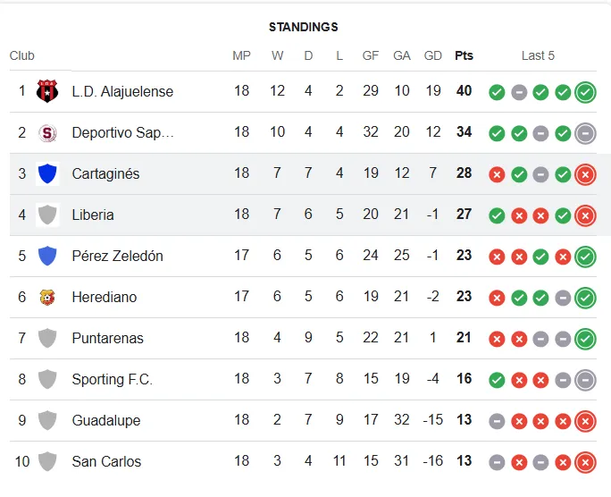 Finalmente, el Club Sport Herediano quedó eliminado y no pudo clasificar a las semifinales a pesar de haber derrotado a Pérez Zeledón por 3-1. El equipo de Jafet Soto necesitaba de la victoria de Cartaginés, que terminó igualando contra Liberia por 0-0 y estos últimos dos están entre los cuatro mejores.
