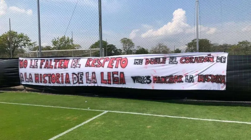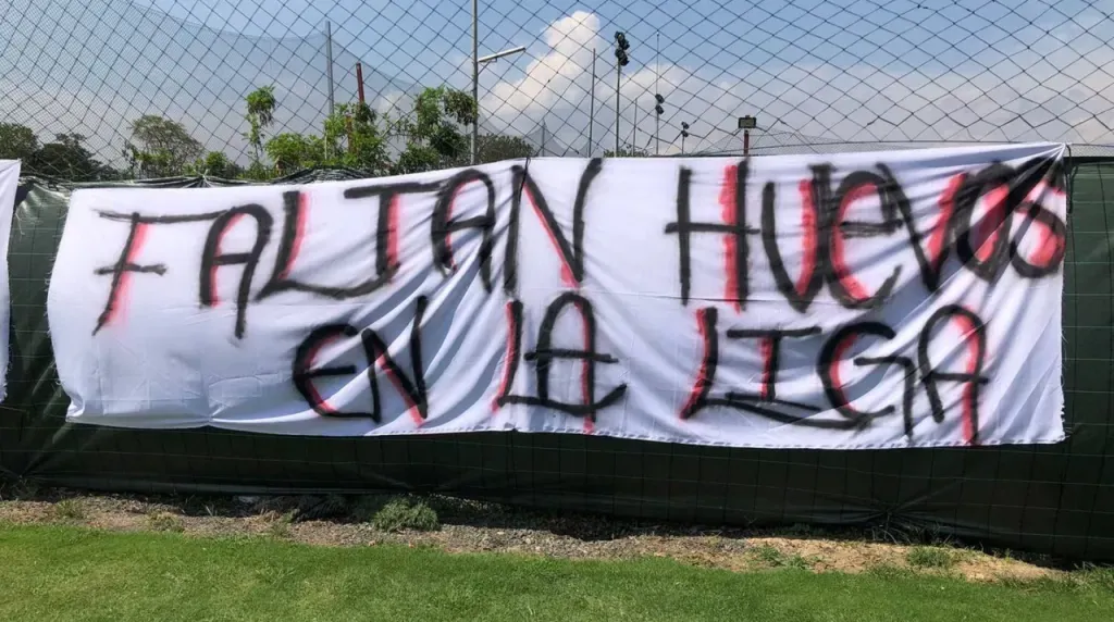 En el lugar había algunas mantas con claros mensajes de reproche para los jugadores debido al bajón de rendimiento que han tenido en esta recta final del Clausura 2023. A falta de tres jornadas para que finalice la segunda vuelta, están terceros con 35 puntos tras obtener 5 de las últimas 15 unidades.