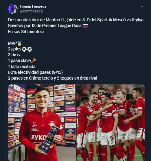 Los goles fueron fundamentales para que el Spartak de Moscú sumara tres puntos importantes en la lucha por los primeros puestos de la Liga Premier de Rusia. Ugalde se ha convertido en una pieza clave en el esquema táctico de su equipo y su capacidad goleadora es cada vez más evidente.