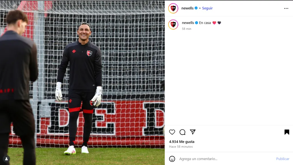 “En casa“, escribió la cuenta oficial de la Lepra para acompañar una imagen de un Keylor Navas muy sonriente en el entrenamiento. El portero costarricense sería titular en el partido del próximo domingo frente a Independiente Rivadavia de Mendoza, en calidad de visitante, en el inicio del Clausura 2025.
