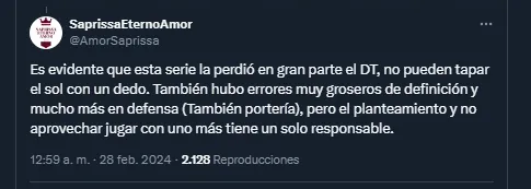 A través de las redes sociales los seguidores Morados dejaron sus mensajes pidiendo la renuncia de Vladimir Quesada al mando del Saprissa. Sin embargo, desde la directiva del club no han expresado ninguna opinión al respecto sobre el futuro del DT costarricense.