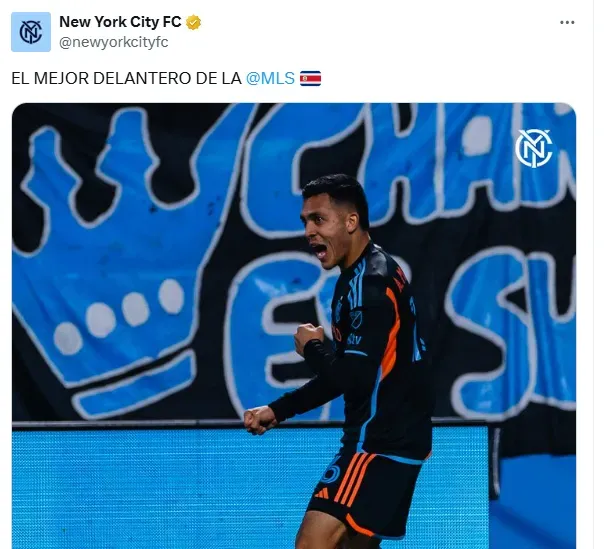 A raíz de este increíble presente que atraviesa, New York City FC no tuvo otro calificativo para describir a la figura costarricense, quien llegará al país en las próximas horas para jugar las Eliminatorias camino al Mundial 2026.