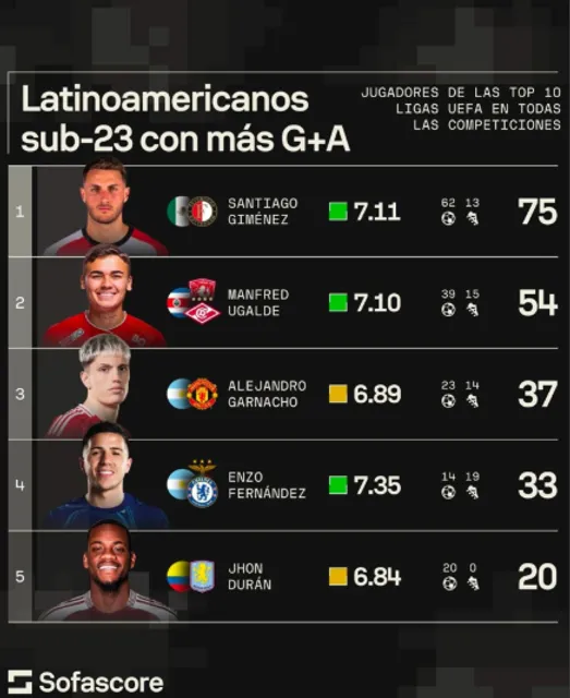 Manfred Ugalde continúa destacándose en Europa al ocupar el segundo lugar entre los jugadores sub-23 latinoamericanos con más goles y asistencias en las principales diez ligas del continente. Su impresionante rendimiento lo coloca por encima de nombres como Alejandro Garnacho, Enzo Fernández y Jhon Durán, futbolistas ampliamente reconocidos y con proyección internacional.