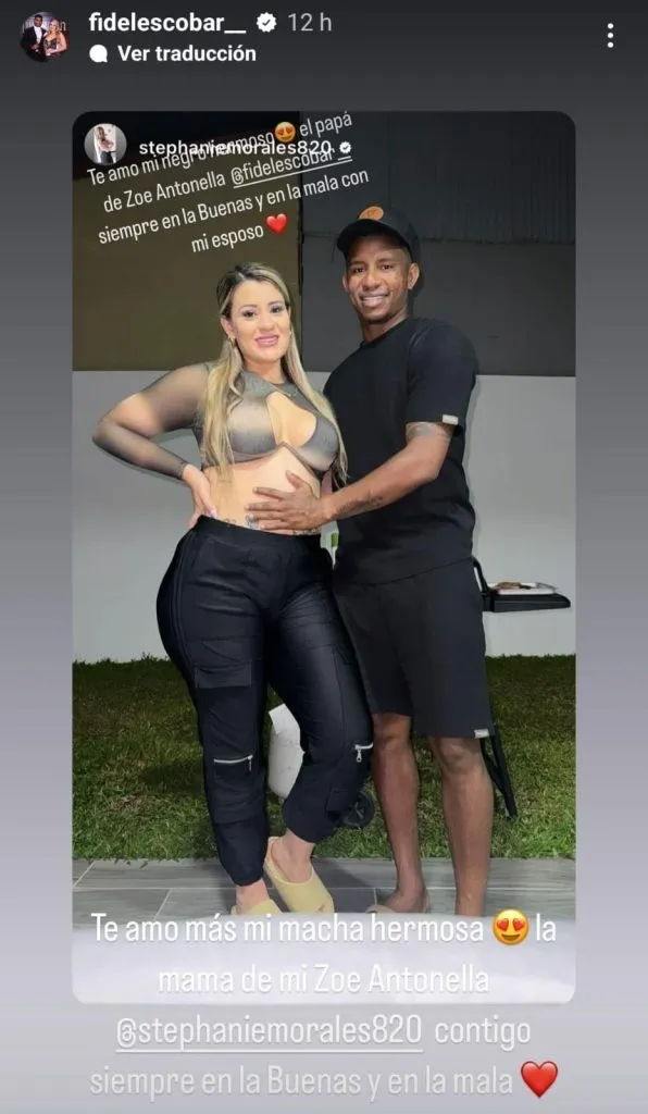 “Te amo mi negro hermoso. Siempre en las buenas y en la mala con mi esposo”, escribió Stephanie, quien junto a Fidel tiene una hija, Zoe Antonella. “Te amo mi macha hermosa. Contigo siempre en las buenas y en la mala”, le devolvió la gentileza el Comandante Escobar.