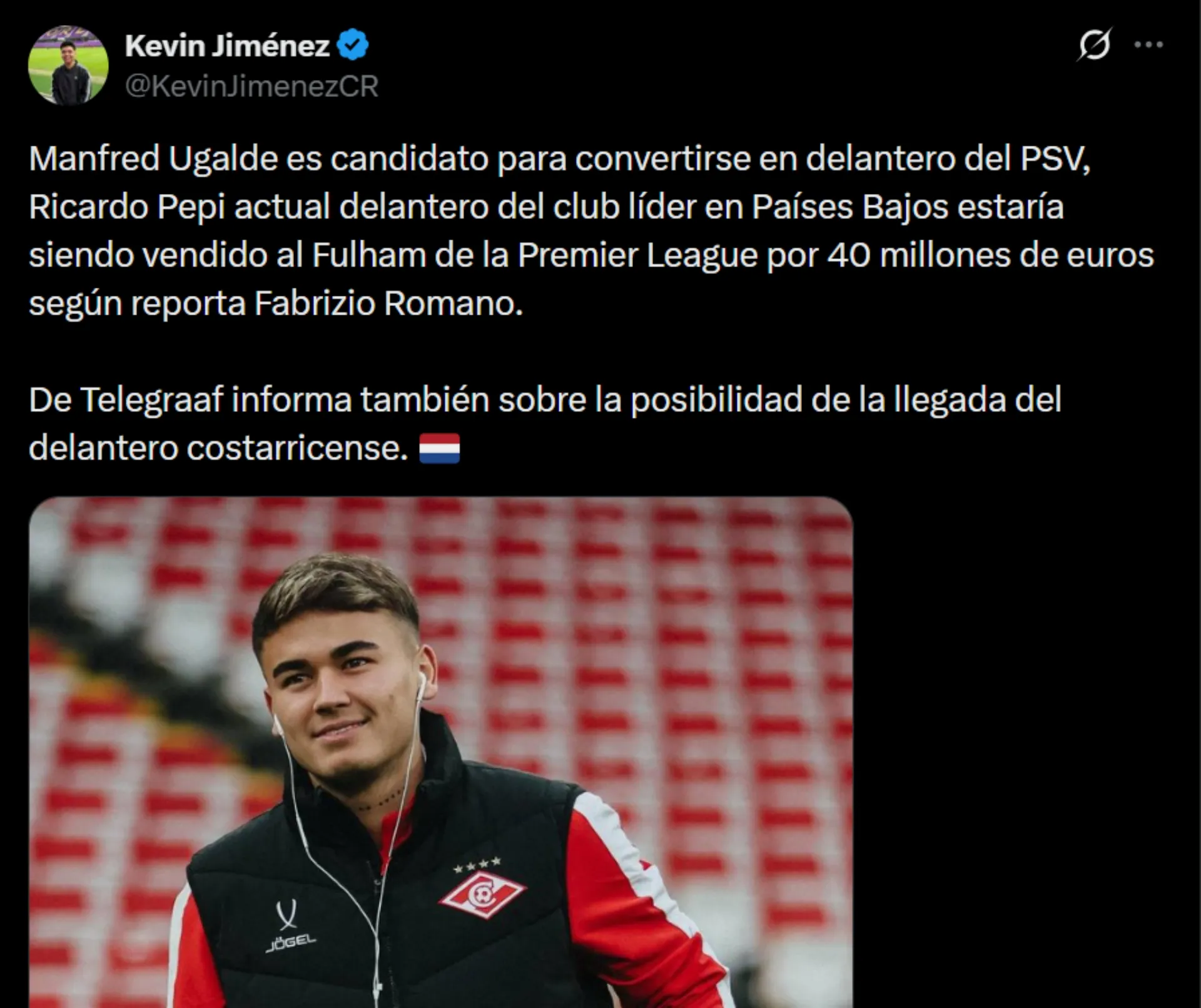 El nombre de Manfred Ugalde vuelve a tomar fuerza en el mercado internacional y esta vez lo vinculan con un gigante del fútbol europeo. El delantero costarricense, actualmente en el Spartak de Moscú, aparece como una de las opciones que maneja un equipo histórico de Europa.