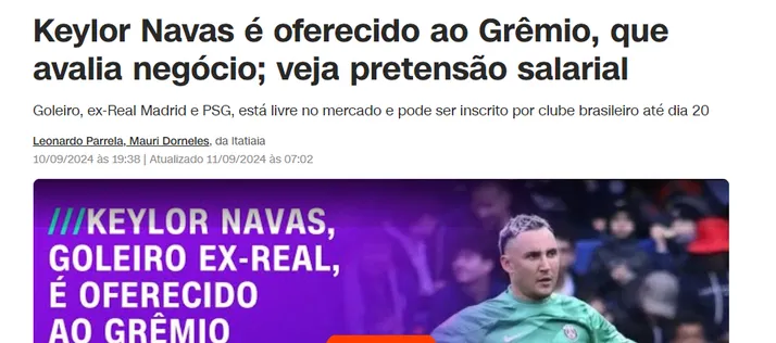 A través de diversos portales, destacando a CNN Brasil, diversos medios brasileros titularon la posibilidad del interés de Gremio sobre Keylor Navas en este mercado de fichajes.