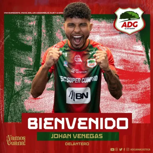 “En la Asociación Deportiva Guanacasteca (ADG) le damos la bienvenida al delantero Johan Venegas, como nuevo jugador”, fue la publicación con la que el equipo presentó al atacante de 35 años en sus diferentes redes sociales.