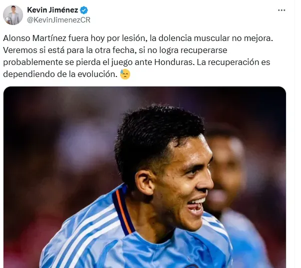 El periodista Kevin Jiménez confirmó que Alonso Martínez está “fuera por lesión” para el clásico que se jugará este sábado entre New York City FC y NY Red Bulls. Según explicó, la dolencia muscular que tuvo hace una semana antes de enfrentarse al Inter Miami no mejoró.