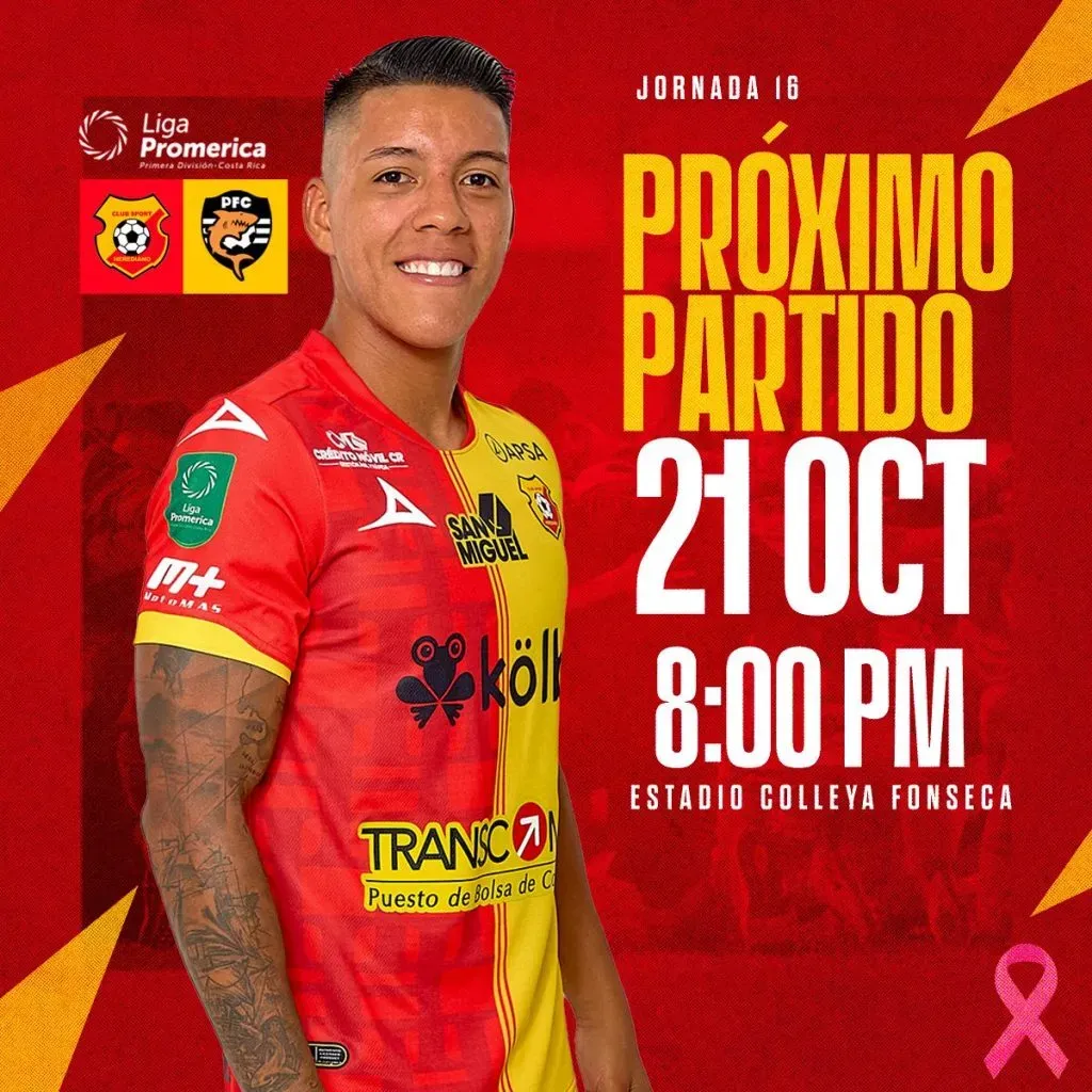 Herediano recibirá a Puntarenas este sábado 21 de octubre, a las 20:00 horas, en el Estadio José Joaquín “Colleya” Fonseca. El compromiso será transmitido EN VIVO y EN DIRECTO por Tigo Sports (canales 300, HD 715 y 10 satelital, app y web).