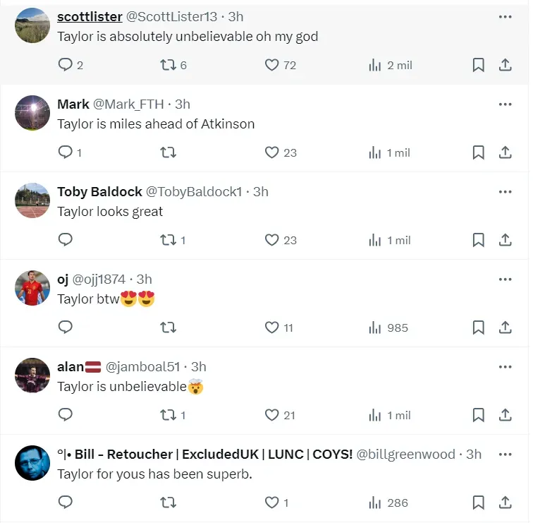 El actuar de Gerald Taylor causó bastante eco en los aficionados por las estadísticas antes mencionadas, incluso se destacó lo que hizo en una publicación del club, en especial porque cuando fue sustituido el equipo quedó expuesto.