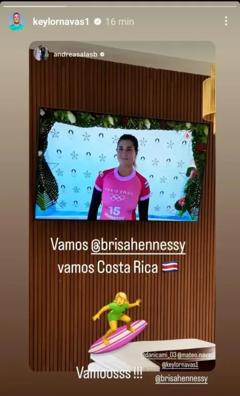 Navas estuvo atento a lo que hizo Brisa Hannessy junto a su familia, su esposa Andrea Salas publicó una historia y la cual fue replicada por el guardameta en el que se unió a la ilusión de poder ganar una presea en París 2024.
