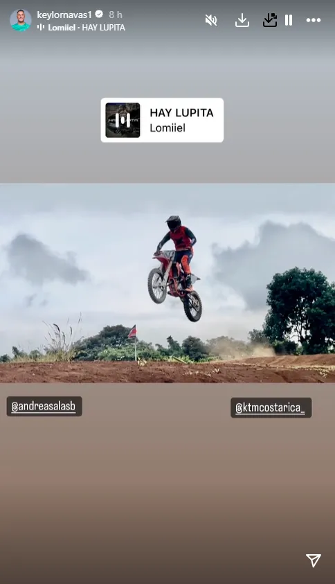Siempre anclado en Costa Rica, donde se encuentra desde hace semanas, el portero mostró una imagen de una motocicleta KTM en un circuito de alta peligrosidad, con un conductor volando por los aires arriba del vehículo.