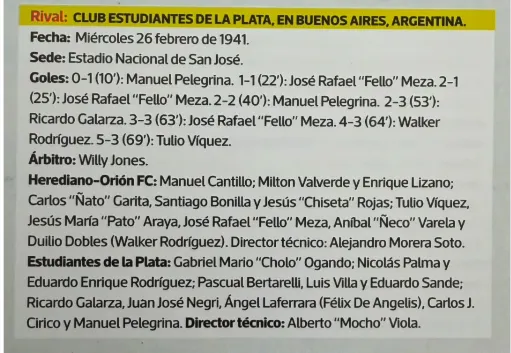 En ese entonces, Herediano se fusionó con Orión FC para armar el equipo completo, algo habitual en esa época. Estudiantes, en aquel entonces, no era todavía el conjunto que luego ganaría varios títulos internacionales para consagrarse como uno de los clubes más emblemáticos de Argentina.