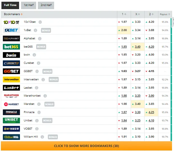 El segundo panorama más claro, según ellos, es el empate, el cual ya supone un enorme salto en el cociente: 3,33 en promedio. Finalmente, trazando una media, el golpe de los colombianos retribuye con 4,15 (Con 10 dólares se pueden ganar 41,5 usd).