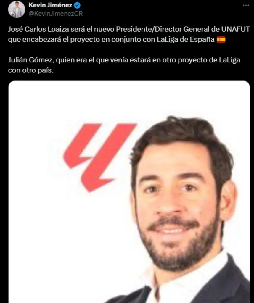 Según informó Kevin Jiménez, José Carlos Loaiza será nombrado como el nuevo Presidente y Director General de la UNAFUT. Este posible anuncio marca el inicio de un ambicioso proyecto en colaboración con LaLiga de España, una alianza que promete elevar el nivel competitivo y organizativo del fútbol en Costa Rica.