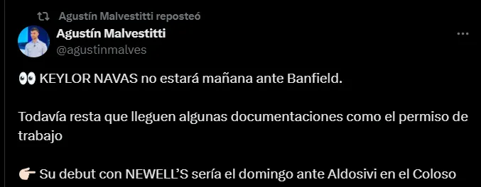 Este domingo, Newell’s hizo oficial la convocatoria para disputar la segunda fecha del Torneo Apertura 2025 contra Banfield como visitante y sorprendió la ausencia de Keylor Navas, quien no estará presente por problemas ajenos a lo deportivo.