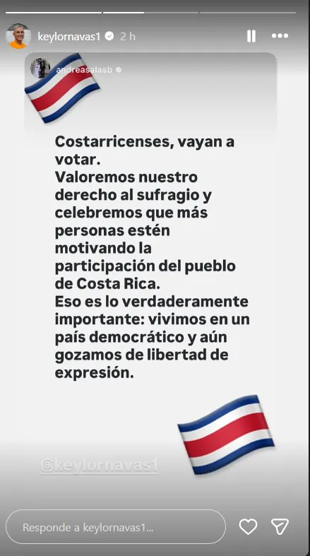 En medio de este polémico caso, el portero de Pumas Unam volvió a publicar una historia relacionada a las elecciones. En esta ocasión, lo hizo para invitar a los costarricenses a ejercer su derecho democrático del sufragio.