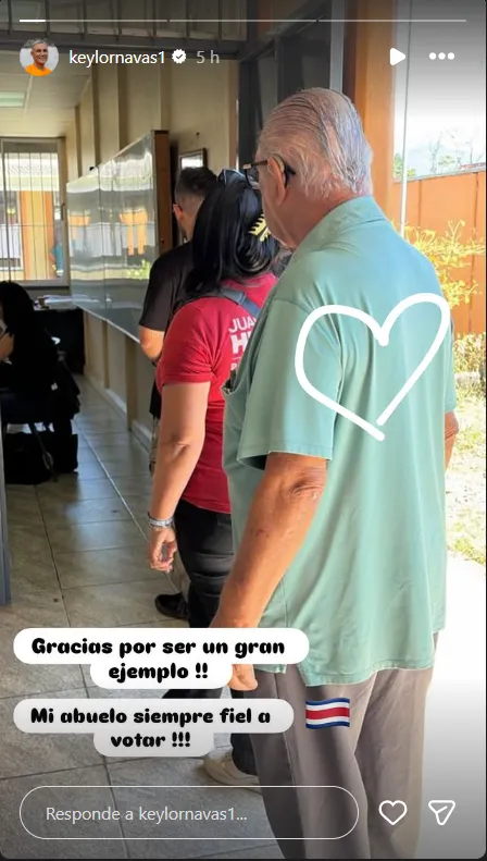 Además de compartir este mensaje, Keylor Navas también publicó horas antes una imagen de su abuelo asistiendo para ejercer su derecho: “Gracias por ser un ejemplo. Mi abuelo siempre fiel a votar“.