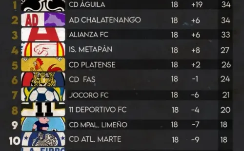 + Clausura 2022 de El Salvador: la tabla de posiciones tras la fecha 18