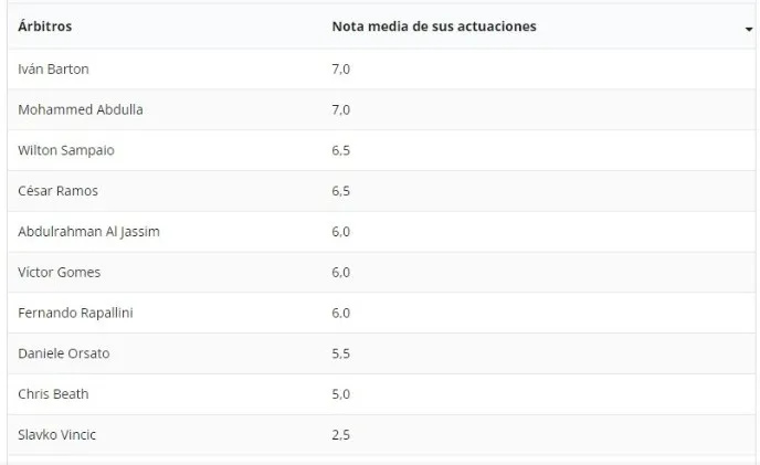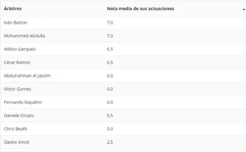 El sitio archivo VAR que es especialista en árbitros, ha dado a conocer las calificaciones de los referís en lo que va de la Copa del Mundo de Qatar 2022, la cual es liderada por el salvadoreño Iván Barton, que ha dejado buenas sensaciones en su primer partido, por lo que no sería extraño que reciba otro nombramiento más adelante.