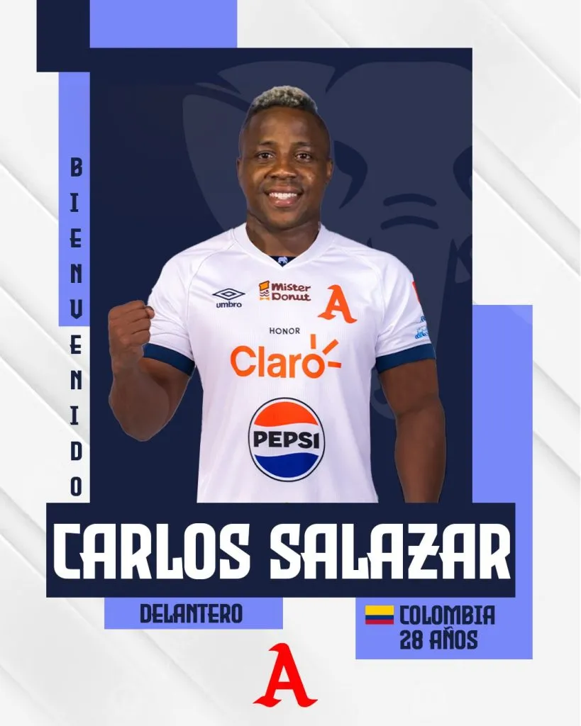 Este martes, Alianza anunció a través de sus redes sociales el fichaje del delantero colombiano Carlos Salazar, quien a finales del año pasado se marchó de Águila con el título de Supercopa bajo el brazo para jugar en el Al-Quwa Al-Jawiya de Irak.