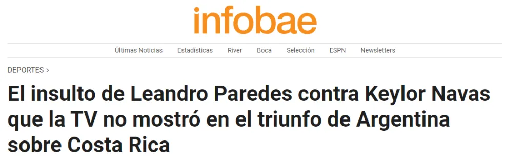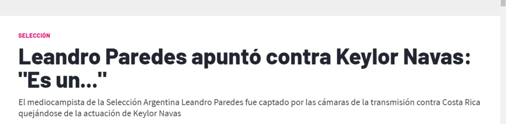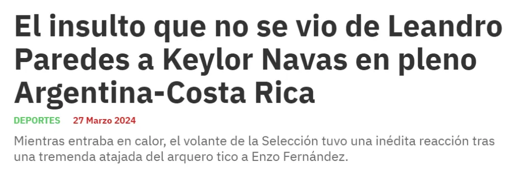Keylor Navas fue la gran figura para la Selección de Costa Rica a pesar de la derrota ante la Selección Argentina en el último duelo de la fecha FIFA correspondiente al mes de marzo. Pero estas grandes intervenciones del guardameta tico no pasarían desapercibidas, por ello Leandro Paredes sorprendido no dejó pasar un insulto de manera cariñosa para el tico y así reaccionaron los medios internacionales.