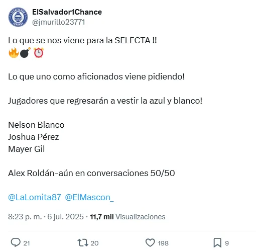 Según la información del medio El Salvador 1 Chance, La Selecta tendrá a tres nuevos legionarios en las Eliminatorias: Nelson Blanco, quien se desempeña en el San Antonio FC de la segunda división de Estados Unidos, Joshua Pérez, recientemente fichado por el Odra Opole de la segunda de Polonia, y Mayer Gil, hermano menor de Brayan y con participación en el Alianza FC de la primera división de Colombia.