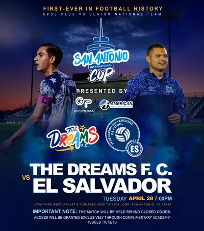 - La Selección de El Salvador jugará contra The Dreams F.C. el próximo 28 de abril de 2026 en San Antonio.