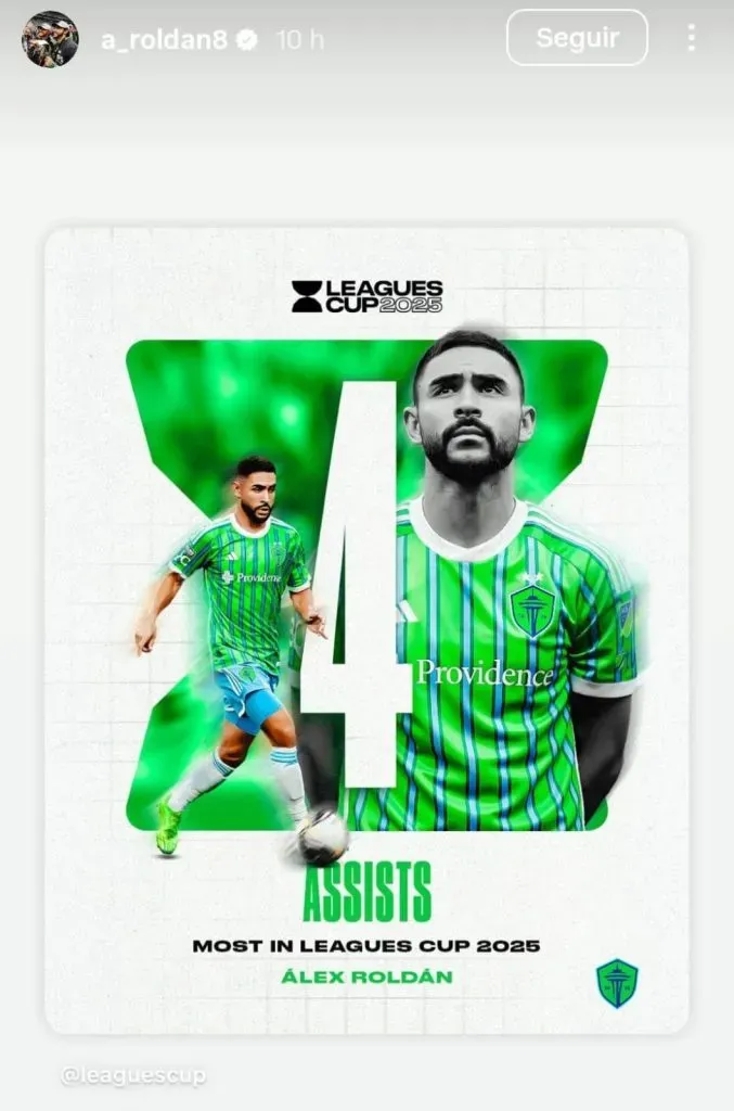 A través de su cuenta de Instagram, el futbolista que acaba de ser campeón de la Leagues Cup con el Seattle Sounders compartió una estadística que lo dejó en lo más alto de la competencia. Se consagró como el máximo asistidor de la edición 2025.