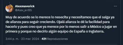 A través de las redes sociales, luego de un posteo de Fernando Palomo indicando que Mario González está para algo más grande que el fútbol local con Alianza debido a su buen presente, esto dijo una parte de la afición de la Selección de El Salvador.