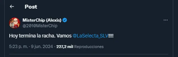 La Selección de El Salvador finalmente consiguió una victoria anhelada al derrotar a San Vicente y las Granadinas por 1-3 en la segunda fecha de las Eliminatorias Concacaf rumbo al Mundial 2026. Este triunfo significó romper una racha de 23 partidos sin ganar, lo que había generado preocupación e incertidumbre entre la afición salvadoreña. Pero en la previa, MisterChip, dejó una publicación particular en apoyo de los salvadoreños.