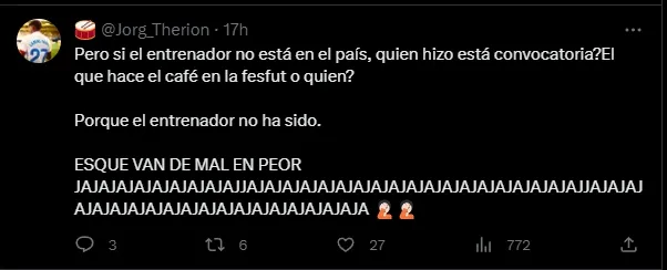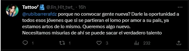También hubo críticas por no llamar a los jugadores que más se están destacando en la liga local, como el comentario de @lomotoperez: “Pensé qué con nuevo técnico se notaria la diferencia, pero volvimos al pasado y si le (dieran) chance que él diga a quienes ve mejor y quienes son solo de equipos más no de selección“.
