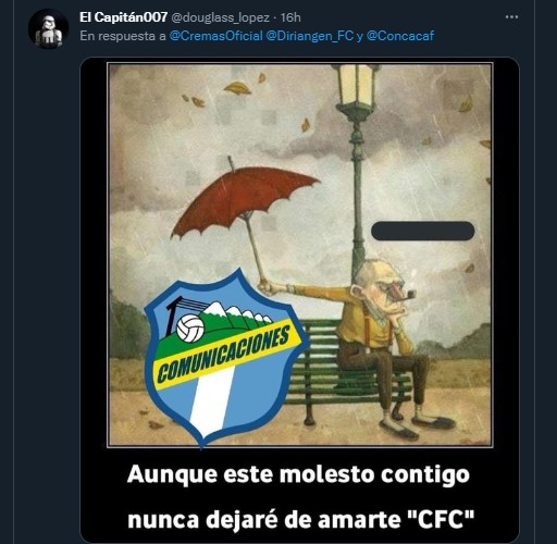 Comunicacionesno comenzó biensu defensa al título en laLiga Concacaf,tras perder(0-1)en casa anteDiriangénen el partido de ida por los octavos de final. La única anotación del encuentro la ejecutó RamiroPeters al minuto 34 del primer tiempo para darle la ventaja a los nicaragüenses. Los memes no iban a dejar pasar esta oportunidad para castigar a los Cremas, no solo por perder ante un equipo inferior en los papeles, sino también por hacerlo en casa.